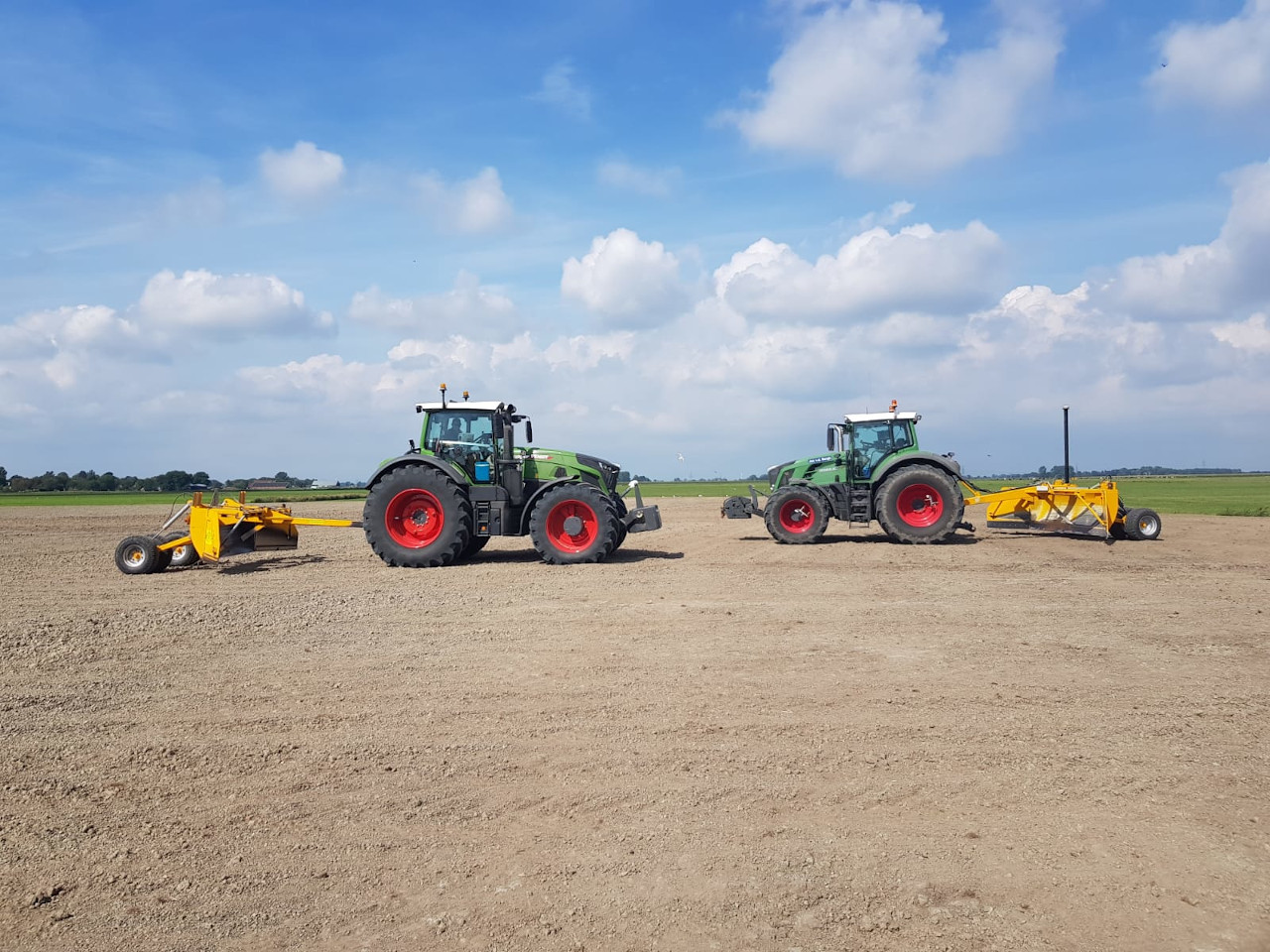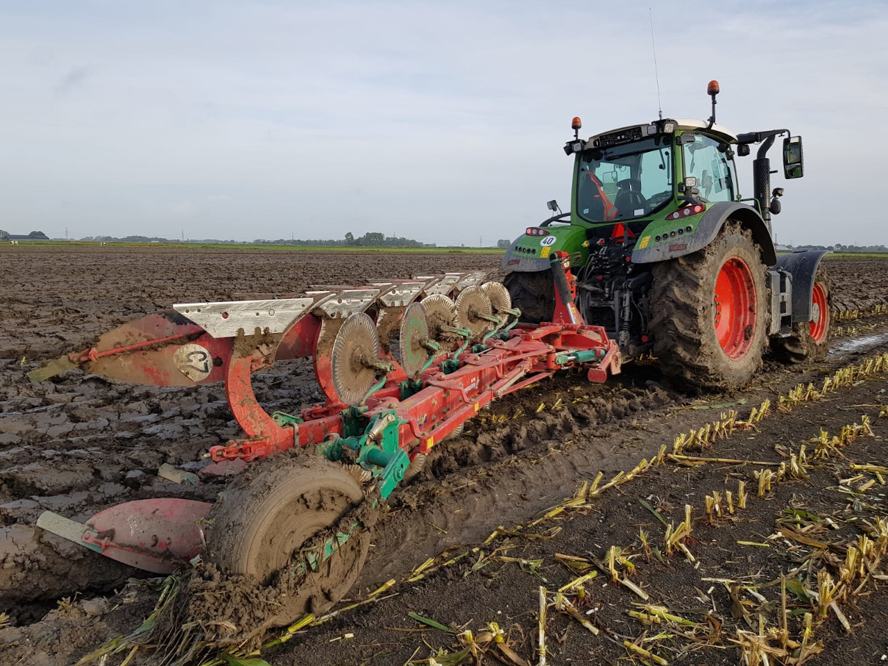 Voor het ploegen gebruiken we een 5-schaars wentelploeg. Onder natte omstandigheden kunnen we ploegbanden gebruiken