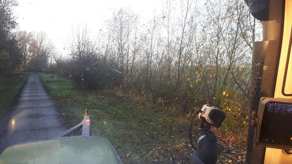 met de midi-kraan het slootvuil over de afrastering leggen en daarna met