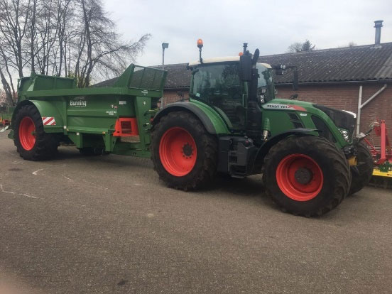 Achter beide Veenhuis-tanken komen twee nieuwe Schouten bemesters van 8 meter breed te hangen.